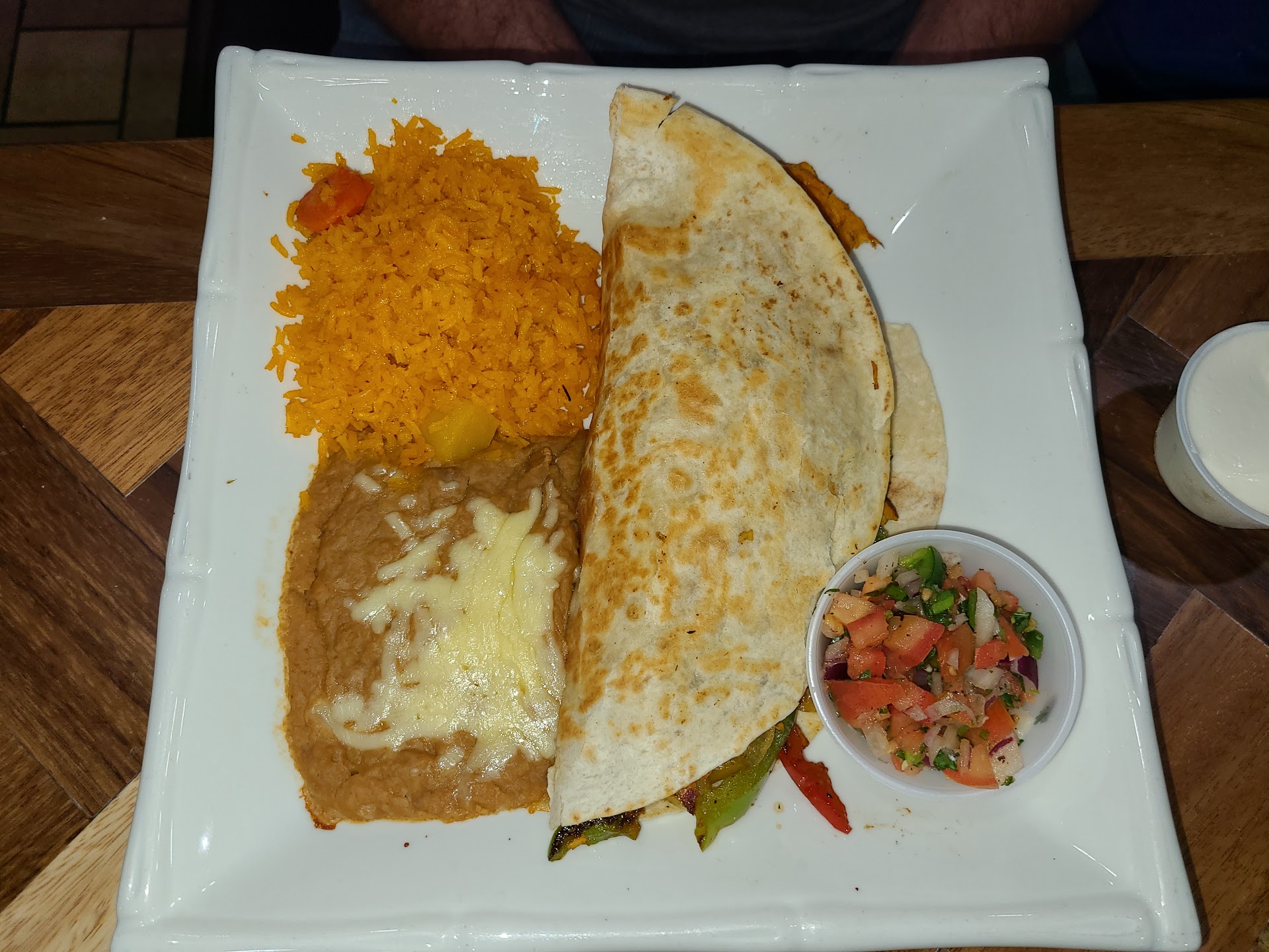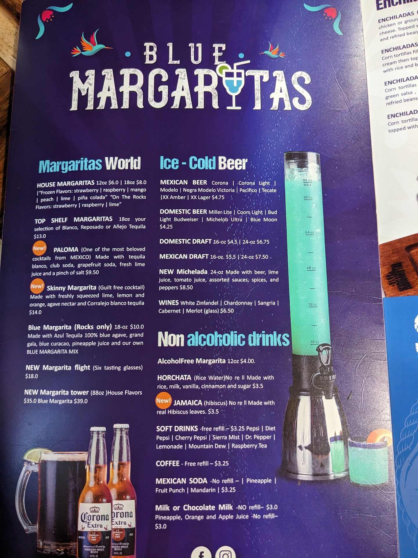 Read moreWe had been told about Blue Margaritas from a friend that said they liked it so when my husband and I were in the area we decided to try it for ourselves and we were happy we did. There is plenty of free parking right outside the door and it had easy access to the highway. The restrooms were clean, roomy and easy access. The restaurant appeared to be clean, newly refurbished, and easy to navigate even if using a walker, cane or crutches. As soon as we were seated they brought out multicolored chips and salsa. I asked if they had a housemade hot salsa and they did not disappoint, they brought it out and it was fantastic. They have your standard Mexican fare and everything we ordered was brought out hot fresh and in a reasonable amout of time. The chicken fajita quesadilla was very good and really unique. Both meals came with refried beans, rice, sour cream and pico. The drink menu had plenty of choices, we tried the Paloma and it was outstanding,...