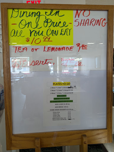 This review started off with 4 stars but went down after speaking with whom I assume is the owner. I got one meat, one side, cornbread and sweet tea. Paid buffet price $13.38. Granted I didn't read the sign correctly, I paid. I told her I didn't see I needed a take out box. It makes no since to charge me buffet price when I clearly got the $6.99 meal. Had to go back to the counter for a refill on tea and decided to take a picture for review. Was then approached by this lady (owner?) who said If I had simply asked I wouldn't of gotten it wrong. Still doesn't negate the fact I only had one meat, one side and tea... I wasn't going to eat "all you can eat". She proceeds to tell me, my review won't make a difference. They can't see my review from Thier land line. And no one there cares about my review. Granted the review was going to be a good but she was so rude, I lost all respect for her responses. I left feeling robbed and disrespected.I left with my tip in my hand and I WILL...