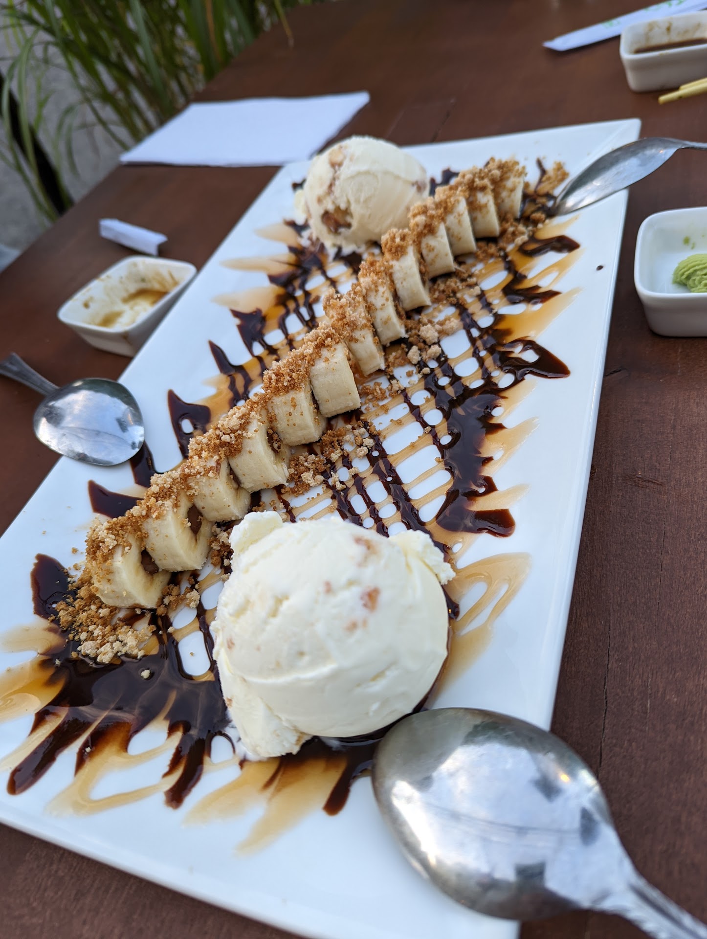 Read moreWilliam Martin, the owner has high expectations for his restaurant. Only the freshest of fish are served here. He has created wonderful combinations for traditional rolls with his own twist as well as amazing creative combinations of his own. You want a lobster roll? His Lobster X2 is stuffed!!! You want smokey flavored tuna....go for the Double J Roll. You want a creative dessert you won't find anywhere else, Ask him for the banana roll. It's not on the menu but he injects Nutella into a banana and serves it with macadamia coconut ice cream with drizzles of chocolate and caramel. To die for! You want a drink with your dinner? It is BYOB or get a drink from the Master Mixologist, Abe, at the Leavitt Theatre next door and bring it over. Please note, as William will tell you, he is criminally under staffed so please be patient. It's...