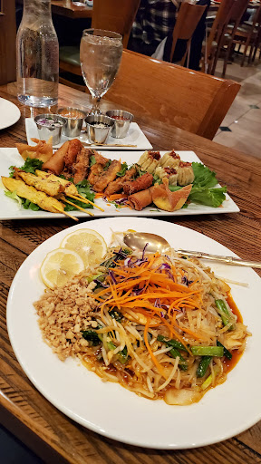 Read moreWe had the Chicken Satay appetizer and two orders of Pad Thai. Unfortunately, one of the servers spilled the peanut sauce for the Chicken Satay appetizer all over our table, my new white NFL Shop hat, in my hair, on my new white shirt, and on my wife’s white shirt. We tried to be kind about it, but I now feel I may have not made a big enough deal over it. The servers did apologize to us when it happened, but that was about it. While I do believe that mistakes happen and tried to enjoy the remainder of our meal (after cleaning up in the bathroom), I was still upset that this had happened (I believe understandably). The service was relatively inattentive after that, and at the end of our meal we were even brought the wrong check. While I was eventually able to flag a server down and get our actual check, I was further upset that we were made to sit for additional time due to this.