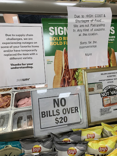 Read moreLiterally the worst sandwich from subway I've ever had. Consistently went downhill since 2016ish. Latest order was the last straw. Bread was burnt, tomatoes had practically disintegrated. My husband had to help me hunt for the chicken, and it had almost no sauce. They gave me possibly the stalest cookie available because it was hard as a rock. This used to be my go-to for sandwiches when I worked at Verizon practically next door, and even though I was pregnant and craving subway, my husband had to finish the sandwich because it tasted like pointless mush. I know the owner had made it too because my husband used to work here for a few months, and the owner and his wife were the only employees in the store that day.
