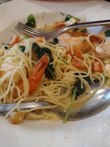 It was ok. My husband and I are new to the area and thought we'd give it a try. Upon walking in at 730 on a Saturday we were greeted by the hostess who did not really welcome us , rather she said " do u have a reservation " . I was a little off put because there was no one waiting and anytime I've ever walked into a place with "café " in the name I'm not in the mindset of needing reservations. We were seated w in 10 minutes. Not bad. Just greeting could use work. The table was right next to pop station, I don't know, not a fan of having a table right next to where the servers hub is, reservations or not. I ordered the shrimp, scallops over lobster ravioli. It was ok. Scallops over cooked and the sauce was a bit bland. My husband ordered the strip steak, he asked to cook to medium rare and was more done than should have. Expirience overall was OK. Food needs a little help. Server was nice ....