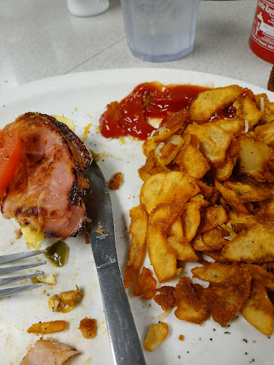 I am not complaining about this place at all. They used to have more old-timey diner prices, but like everywhere, prices have gone up. Any simple egg dish for breakfast will cost you 10 bucks. You can tell that they buy some of the cheapest eggs that money can buy, and they are relatively flavorless. The "hash browns" that they give you by default are deep fried, which makes them greasy and so hard that you can't even pierce them with a fork. They are pictured as part of the "Texas Hangover" breakfast with this review.