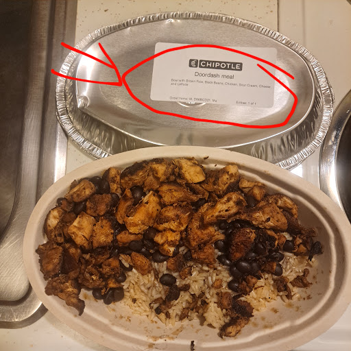 When I arrived, I was surprised to see there was no one there, because the chipotle locations I frequent are usually always busy (especially at 7 PM on a Monday). The employee that I was in contact with at the drive through was rude and unwelcoming, and made a snarky comment when I said I wasn’t sure if the order was under Rebecca or Becky even though it was the only bag sitting on the shelf for pickup. I shrugged it off to her having a bad day and went on my way. Upon getting the food home, we found the chicken, rice, & beans were cold and dried out like they’d been sitting all day. The shredded cheese was also dried out like it had been sitting for a long time. The chips were completely stale and tasted like rancid oil. It was obvious they’d been sitting for more than just the day. I even put them in the air fryer to try to bring them back to life but the gross oil taste was too tough to overcome.