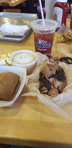 Read moreFantastic experience. Lady and I were headed to Texas Roadhouse and we were immediately put-off by how insane the parking lot was. We were about ready to give up out of frustration and head home for leftovers when we spotted City Barbeque across the street. Very happy that we did. The cashier took one look at us and asked if it was our first time there, lol. Apparently we had a deer in headlights kind of expression on our faces as we entered. Should we wait to be seated, order at the counter and seat ourselves, will they bring the food to us or call out the order? Luckily, the cashier knew her job well and set us up patiently while we took our time deciding. She eve n asked us if we would like an explanation of the menu since it was our first visit. We accepted and she fired off the whole thing barney style in 30 seconds and we were good to go. Young lady working the register around 6pm 4/8/15 was very professional and friendly. Ya'll should give her a raise. Did I mention that the food was delicious and arrived quickly? Everything was juicy and tasted fresh. A HUGE deal with me. Dry, heat lamped BBQ will kill any positive experience for me in a second. Wasn't a problem at City. Going to make it a regular haunt of mine. Will be returning this weekend for Dad night with...