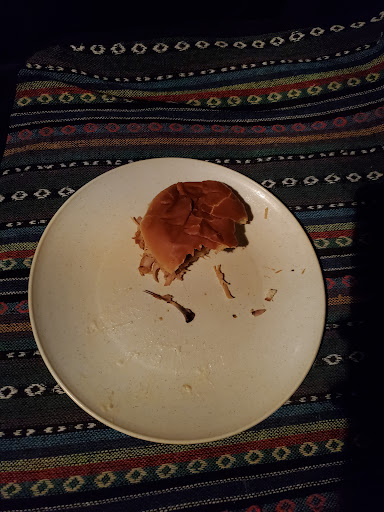 The luke warm mac n' cheese tasted good, even though it looked and tasted older. The pulled chicken was OK too, barely luke warm and with that sauce.
