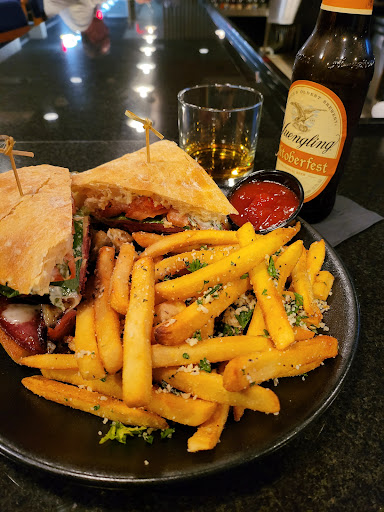I stayed at the DoubleTree which is attached to the restaurant. I did carry-out. I got the meatloaf griller with Parmesan herb fries and brussel sprouts. They were all very delicious. I topped off my meal with a piece of their carrot cake. The carrot cake had caramel drizzle and whipped cream with a candied pecan on top. It was very rich! I spent $34 on the meal.