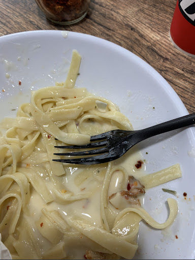 No silverware available. Me and another guy waited to get plastic forks from behind the counter. And no napkin dispensers on the tables. I wasn't expecting Carrabba's or even Olive Garden, but this was pretty bad.