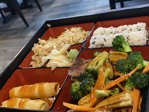 Moving on from that, Fuji Sushi offers what I thought to be an extremely large menu for this type of restaurant. Sushi, hibachi, bento boxes, appetizers, deserts and more. If you're a fan of Japanese food you're more than likely to find a couple things you like. My wife and I purchased a Chicken Hibachi and a Chicken Bento box. Both meals came with such an awesome amount of food. You get soup, salad, and then the full meal on top of that. Hibachi chicken included veggie, rice, noodles, and chicken whereas the Bento box included a variety of sushis, rice, rolls, and chicken.