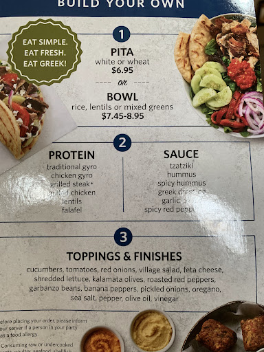Simple Greek is a good concept like a Subway or Chipotle where here you pick either a gyro wrap or bowl adding toppings as you desire. Pick your Gyro meat, gyro chicken or grilled chicken, lentils, falafel and every topping and additional items that are more varied than those places mentioned along with sauces as desired. 8-10 inch warm pita for 6.95, bowls 7.45-8.95. I had both the traditional meat gyro and a gyro chicken gyro. Basic gyro log of meat while the chicken is a mix of dark/white meat both on vertical broilers. Meat tastes basically like all other gyro places while the chicken gyro meat is more like what is sold in the Middle East and most quick service gyro places around here don’t have. The big difference here is in the variety of toppings. Only thing I felt could be better was to have more freshly sliced meats. Mine were somewhat dry and seemed to have been in the bin for a while. By the time you make yours, it could be simple or so big with toppings you can’t close it. Well worth the price for the gyro wrap. Didn’t try the bowls. For those who have lived in Saudi Arabia, as I have, get the chicken gyro meat, have them add the required fries, garlic sauce and pickled onions. It is as close as it can be to the “standard” Saudi shawarma available everywhere in the Kingdom, except they don’t have the pink pickled turnips on them! Might have to pay a little more for the additional fries. Sides a bit expensive for what you get with 6oz hummus cup at 2.95. Like a single serve yogurt cup. The menu is not big having only 20 items including drinks and sweets, the star being the gyro or gyro bowl. Didn’t try any sides or fries. Maybe next time. They gave me a coupon for free Greek fries w/ purchase next visit. I...