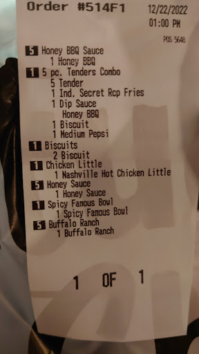Read moreDrive thru was worst experience I have had at any restaurant. I ordered one 3 piece combo dinner for my husband, she said it came with a drink, so I ordered a pepsi. She said total was $8.29. When I got to window to pay she said $11+ dollars. I told her she said $ 8.29, she said prices have went up and they can't keep up with changing prices. I said, will you please check that cos $11 for one meal is kinda of high. She shut the window and came back and said it is $9.29. I reluctantly paid. She handed me a drink, which was mountain dew, I didn't take the drink in my car and held it out for her, she came back and told her, I ordered pepsi. She said you said mountain dew, I said no, we never drink mountain dew. So she took it back and I watched her make another mountain dew, which she handed to me and I said nope, it is supposed to be pepsi. Then, she handed me a drink that had been sitting there by the window all that time! Finally, got his order and told my husband that I am never going back- he will have to go himself to get his chicken! The only staff I dealt with was the one young woman at drive-thru window and...
