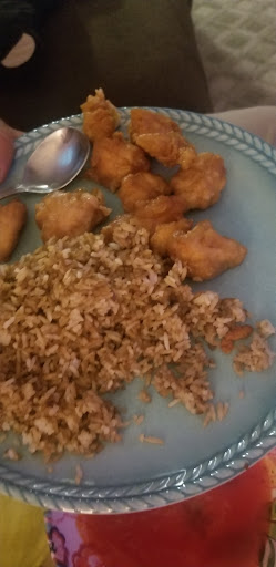 The general tso's chicken was very sweet and not at all spicy. Definitely not legitimate Chinese food. The beef and peppers had no flavor and was super slimy. The fried rice was burnt white rice with soy sauce in it, and was so dry it wasn't salvageable. Speaking of the fried rice my son asked if he bit into a pea, but there was no peas or any veggies in the fried rice, so what in god did he eat?