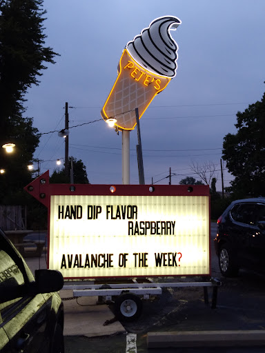 Read moreWe absolutely love Pete's! I don't know where they get their ice cream from but it is seriously some of the best I've ever had. The list of flavors is enormous! I seriously think they probably have over 40 different flavors is ice cream. To go along with that, my favorite style is the waffle cone. But, you can get a regular cone or in a bowl too. Their version of a DQ blizzard is better than the Queens.... Sorry not sorry, but it is. They have hot foods that are delicious too. You have to try the following ice cream flavors: salted carmel, moose tracks, cappuccino crunch, strawberry cheesecake and...