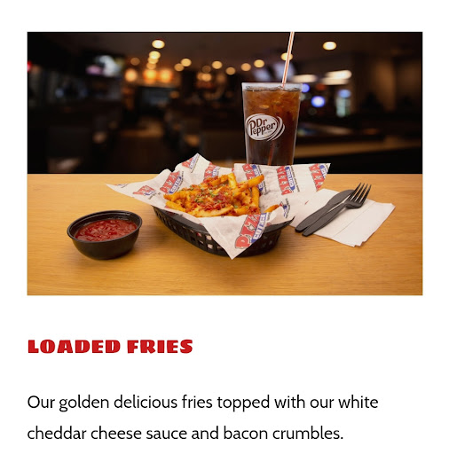 Don't eat here, they just throw your food together, our fries were dry with no white Cheddar sauce, they just put a little bit of shredded cheese and way too much bacon bits. Our pizza was still doughy in the middle like it hadn't been cooked long enough. It was nasty. I paid 70 dollars on food that was garbage and they didn't want to refund me or replace my food. I hope this location goes out of business. You don't do this to...