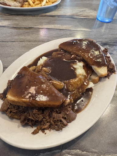 The food, sadly, was below average. I started with the vegetable beef soup, which was a major letdown—there wasn’t a single piece of beef in it. It tasted like bland, unseasoned vegetables. The hot roast beef sandwich was equally unimpressive, with soggy bread drenched in flavorless gravy, and the mashed potatoes tasted like instant potatoes with zero seasoning. I barely managed to eat a few bites, even though I was starving.
