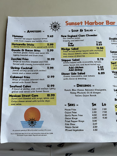 Been down to come back to this place for years now and I finally made my way this weekend. I came here with my brother after enjoying the shores at Fairport Harbor Lakefront Park. I was almost confused as to whether the burgers on the menu included a choice of ghost pepper cheese (according to the menu). Luckily, the waiter proved me wrong and reassured me that ghost pepper was still a choice selection, so I ordered the Surf & Turf Burger which probably included one of the best Cajun ranch sauces I had ever tasted. The size of the meal was perfectly balanced as it was too small to the point where you are still hungry or too large to where youâre nearly asleep but just right to keep you energetic afterwards. Aside from the menu, I was fascinated by how great / calming the atmosphere was. I mean the hostess gave us a choice of dining in at the bar area, deck, or restaurant (indoors). But not only are the areas of interest are flexible but every area has a great view overlooking Lake Erie and the Marina, and the only thing youâll hear is waves. All in all, my advice for newcomers having the best experience here is spend time at the lakefront before heading to Sunset Harbor for lunch. Choose the best view and spot that matches your interests. Also, I recommend cash rather than card since it makes...