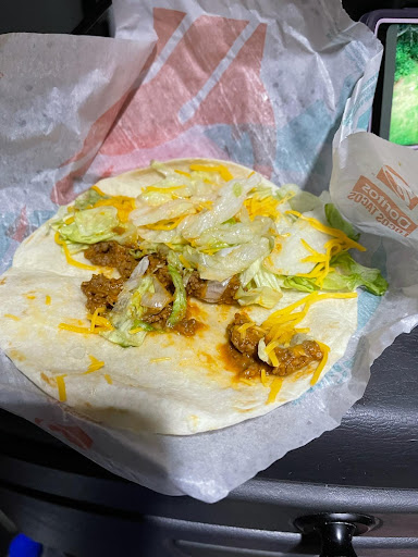 ย ย ย Read moreTasted like taco bell and the building itself looks like a normal taco bell, The staff was nice/normal and i got my food fast so food and atmosphere are covered....... but.......this store must be managed by a jew or a haajee because they are extremely skimpy with ingredients. The reason I started ordering the cantina chicken Quesadilla over the normal chix quesadilla is because they usually load the cantina with pulled chicken..... NOT HERE i orderd 2 cantina chicken quesdillas and 2 Doritos loco cheesy gordita crunches and I guarantee you there was not an entire oz of meat of all of those items combined. I opened up my quesdillas and only the middle piece had meat in it. Which means they put a teaspoon of chicken folded it and called it good. Same story with my gordita crunches ( pic below) please do better austinburg...