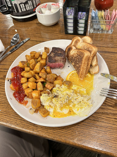 Read moreWe went for the special Valentine’s Day menu. I ordered a boar chop, baked potato, and broccoli. We also had tossed salad, calamari, crème brûlée, and strawberry shortcake. There was only one server for the whole place and she had to work as a bartender and bus person as well. Our reservation was for 6 pm and we were at the restaurant for a full two and a half hours. Much of the chopped lettuce in the salad was brown at the edges. The potatoes seemed like they had been baked and sitting all day and they were barely warm and rock hard from sitting or maybe being in a steamer or wrapped in foil prior to service? They were awful. My boar chop was so tough it was literally too hard to cut off the bone. It had no flavor and was rare. The broccoli was not any fresher than the lettuce and had yellow and brown spots through out the whole serving. I am so disappointed. This is the first time in years my husband and I decided to go out for Valentine’s Day. They did take my meal off the bill. My husband had Filet Mignon and scallops and it was good with the exception of the salad and potato. Our desserts were good. Incidentally, doesn’t my chop look more like a small shank? I don’t even know what the heck...