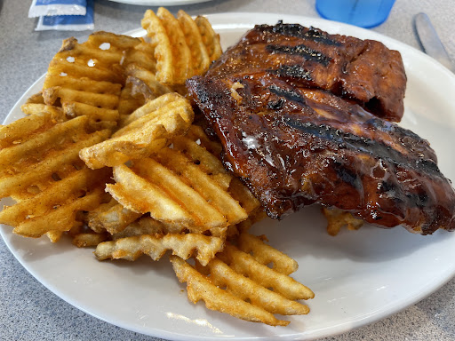 I really really wish I could give a good review of this place! I was excited to try it. The place is very nice.. The server was very nice! None of that got the one star... The prices are high, which I am fine with BUT I expect quality food for the money! The lettuce was very wet on the salad bar and was finely chopped up which I thought was strange. If it was not for the wet soaking lettuce the salad bar would be very nice. It cost 10 bucks for one single trip to the salad bar!!? Really? 10 bucks? That is not reasonable in my opinion.. The onion rings were soggy and were definitely Frozen not hand cut and dipped. The ranch was good.. I got a full rack of ribs and they came as 2 half racks stacked on one another. The top one tasted really good but when I started on the one the bottom one I found it not to be fully cooked, and I did end up getting really sick that night and feeling ill the next day. We as a small family.. 2 adults and a 1 year old cost a little over 70.00!!! No alcohol was purchased. And not including tip. Over 70 bucks! The fries are good! They were included in the appetizer sampler (which in my opinion is taking a cheap way out) along with the onion rings I was talking about. Everything came out almost at once, no time to eat the salad, then no time to eat the appetizer, and then the main course comes on top, that's the servers fault for putting everything in all at once. But like I said the server was very nice! I can not justify ever going back especially after getting really sick, that was kind of scary. I just can not recommend the place after...