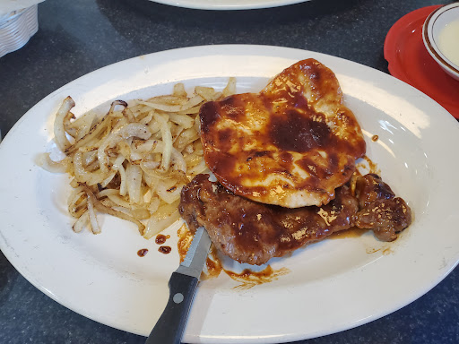 The silver diner its located in makes it neat and noticeable from the road. We weren't made to feel very welcome bc we weren't "regulars". The other patrons who came in after us got better service in my opinion bc they all knew eachother by name and received refills and whatnot and ran the servers to death yet we couldn't get refills, to-go boxes or our check until my husband just got up and took one of our kids to the car. We tried numerous times as the servers would walk past us to politely wave them down. It was as if they had blinders on.