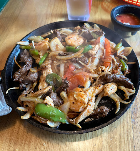 We ordered the sizzling fajitas trio and the enchiladas trio. Both dishes were excellent! In the fajitas, the shrimp, beef and chicken were super flavorful, cooked perfectly and just tasted great. It came with refried beans, Mexican rice, guacamole, pico de gallo, and some tortillas (which were cooked perfectly as well)! All three enchiladas were excellent as well. I can’t decide which was my favorite!!