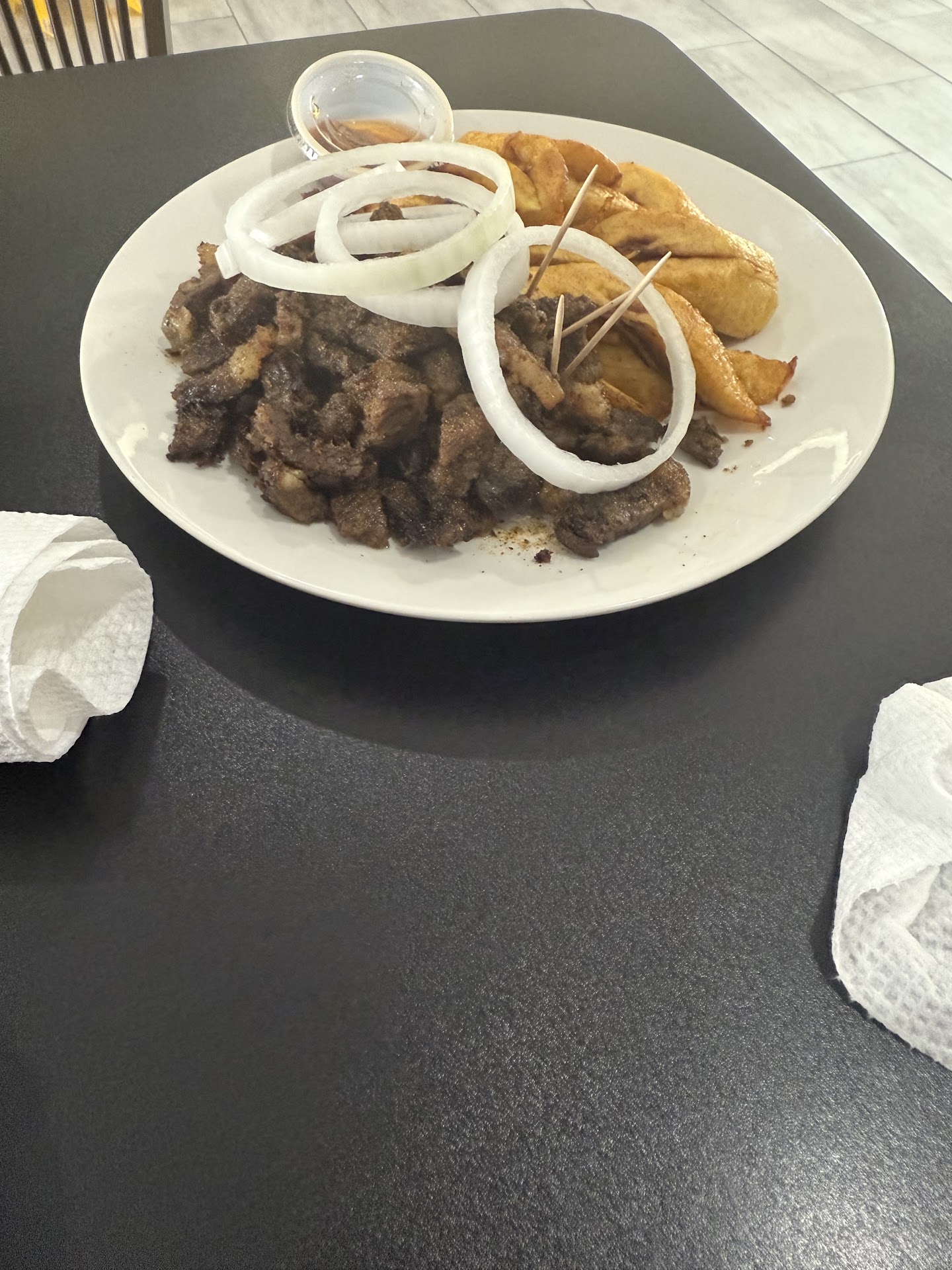 Ā Ā Ā Read moreWe had peppered goat with plantains and fufu (I subbed fufu for rice) and beef skewers. They were soooooo delicious! The goat so tender and the plantains sweet but firm. We also wanted to try something new so we tried Achu (taro root dough with a yellow soup w/meat). Definitely not what Iām used to so I wouldnāt order that again. That doesnāt mean it was bad, Iāve just never had it and the flavor profile was way more bitter than...