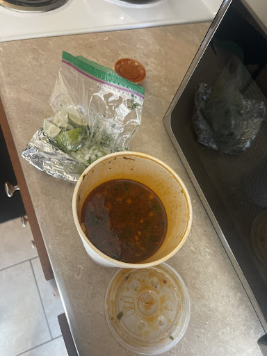 I got the order to go and took it back to my work. There were three meat and cheese filled birrias with a cup of warm red broth and a small container of (possibly avocado) sauce with . I can say without a doubt this was one of the most flavorful and delicious meals I have had in a long time. The texture of the slightly thicker tortillas that were dunked in the red tinted broth, grilled to crispy perfection, and filled with meat and cheese were excellent. The complex flavors of the meat and especially the broth made me want more, even though the three were plenty to fill me up.