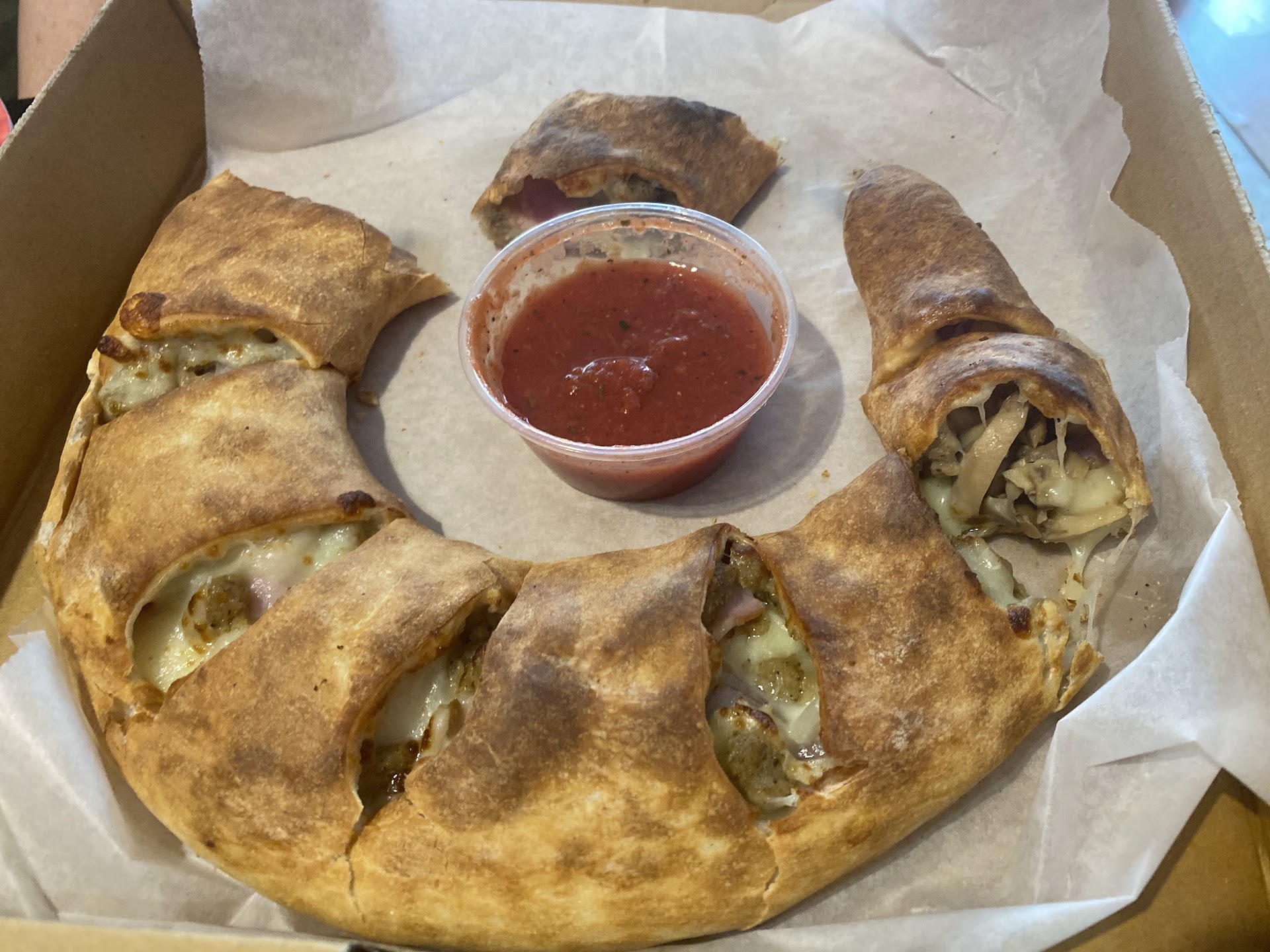 Read moreI placed an order online and arrived to pick up my order at the indicated time. My order was supposed to be ready at 6pm, however, I had to wait an additional 30 minutes. OK, I get it. They get busy and sometimes delays are inevitable. I can live with that. I wish I could say that was the only issue. Unfortunately, it was not What I don't understand is if I had to wait an extra 30 minutes for my order to be ready than why was the entire order cold? Not lukewarm, but downright cold. Also, one of the pizzas inspite of being cold was very, very, well done. Additionally, I ordered their cheesy bread along with two extra dipping sauces, that I paid extra for. The extra sauces were missing from my order. Overall a very disappointing experience. While waiting for my order I noticed that one of the guys working in the kitchen had long unkempt hair and no hair net. While I was telling my wife about this my granddaughter let's out an EEW and pulls a long hair off of her cold pizza. OK, so cold food is one thing, an incomplete order is another but hair in the food is just plain disgusting, especially when the employees should be wearing hair nets or...