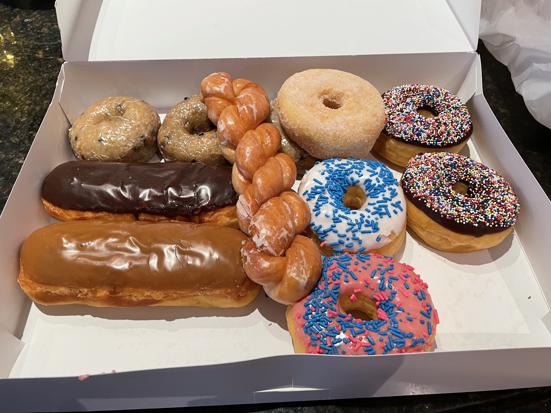 They opened four months ago. The owners are very polite and nice. The building is tidy and clean, with the main event pristinely displayed beneath plexiglass right as you walk in. If you're looking to get the morning off to a good start for a meeting, walk in with a box of AM Donuts.