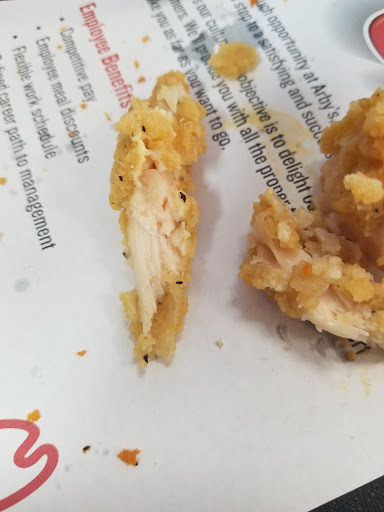 Read moreDangerous! Do not eat here. They served my daughter raw chicken and then told me "it happens some times" and then proceeded to offer me another batch of raw chicken! No thank you I do not want more of the raw chicken you served my daughter don't want it to "happen" again. Did not give me a refund however I didn't ask for one i was to angry and my daughter was crying! Arbys is a joke. Now I understand why people never eat here! Oh and I'm still waiting on the so called e mail guest services promised me so I could have a copy of my complaint. Place is a joke! Also the pictures below aren't even the worse. The so called store manager took the extremely under cooked one before I could take a picture and would not give it back. That one literally looked raw all over under the bread. Again please for your health do...