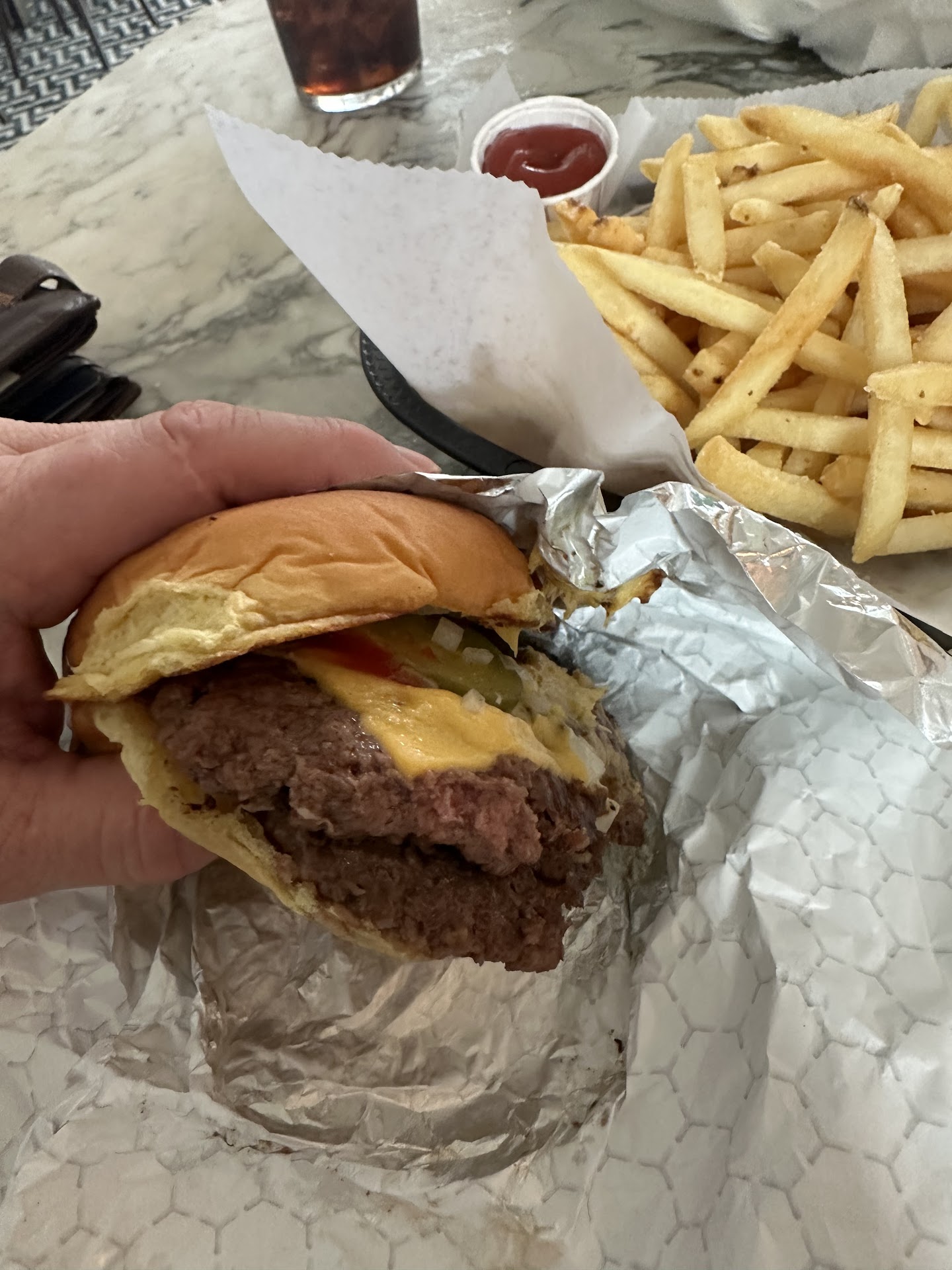Read moreSo much hype, so much let down. I am all about a Sunday when it's a fun day! Unfortunately, this was not. Why you get three stars.... -My daiquiri was on point. If you haven't had one of these made of rum, lime, and sugar...I highly recommend. -The fries are the closest I have gotten to McD's fries. -The burger has the chard crispyness and in a 2 drinks down state of bliss, tastes like a 2am hungryness good. Why you missed the other 2 stars... -Waiting. Better bring your bag of patience if coming here. Bartender told us it would be 45minutes just to get the burger. Waiting to get served a drink. Waiting to get asked if we wanted another(which never happened). Waiting for my fries to come. They finally did when my burger was 2/3 gone. You will see in the picture. -Alton Brown must have been high on life when he had that burger. It is not the best burger and quite frankly, I won't be back for another. It was dry, definitely could use a better bun. -Although the bartenders could make a good drink, they stunk at multitasking. We literally sat at the bar. Never once upon walking from one end to the other did they ask anyone at the bar top if they wanted another or is everything okay? It was almost like they were on this, if you want something, you come to me attitude. And maybe something has changed, but since my days of bartending, we weren't allowed to take shots with customers. Yes, I know people want us to, but unless something has changed, it's a no while working. I seen a bartender take shots twice in the time I was there. Which was an hour and half. Bar...