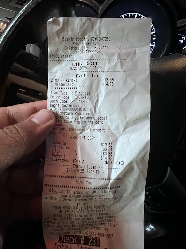 My wife has been a loyal customer of Baskin-Robbins for a long time. Unfortunately, her experience on Thursday was very disappointing and upsetting. She went to buy two milkshakes, but the employee who served her (a Latina girl, name listed on the receipt) was extremely rude and showed no respect or courtesy.