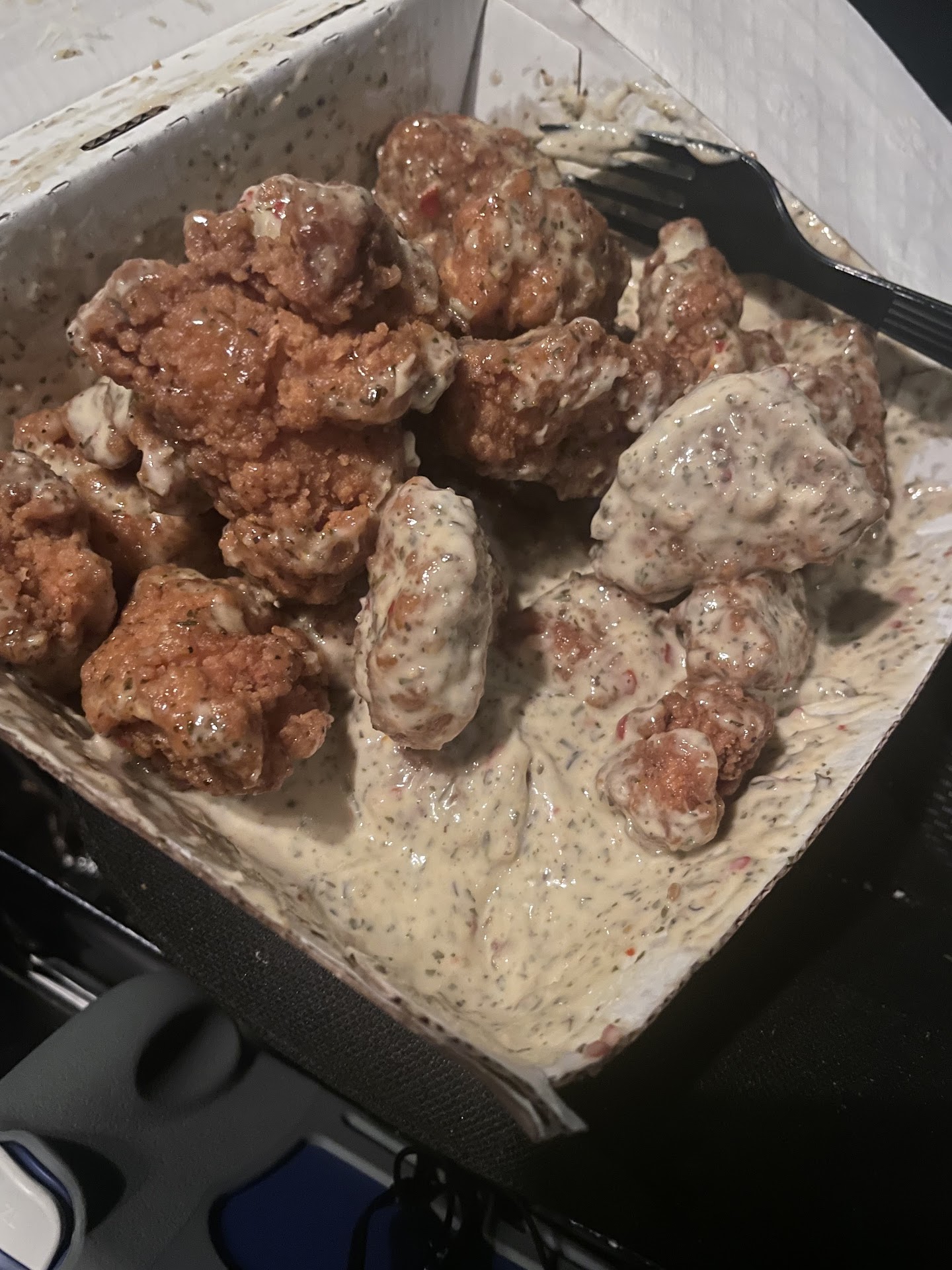 Read moreEveryone was super friendly and sweet, things just kept happening wrong. I’ve never been to this BWW before, but I got here a bit before 00:30, and I love the rain, so I asked to sit on the patio and they asked me to tell a server in the bar area, and so I let them know and they said they were going to tell someone else. But I’m sitting around for about an hour, it’s like 1:15 now, and I haven’t seen anyone walk out to the patio at all yet and I didn’t want to really bug a server a whole lot, so I went out to the main room and asked for a menu. I sit back down for a little, I look up when they close and it says 2am, so I went back out around 1:40 and asked if I could order and they said it’d have to be to-go and apologized and stuff I felt really bad that I was ordering so late, but they said it was fine and I left a tip and everything because I know I probably made the wrong move of sitting on the patio. But I got my food and went back to my car to eat and watch a movie before driving back home, and I realized a ranch had popped open in my bag. I went back and asked for a couple extra napkins because the box felt soft-ish from what I thought was ranch. They politely gave me some and a few extra ranches, but when I actually opened and looked in the box, I realized it was soft because there was a giant amount of sauce piled at the bottom and the wings were kinda just sat on top. I know it was close to close and everything, and I already felt bad enough, but I had been there an hour and a half before close anyway. I mixed them up a bit before deciding to leave a review and take a picture, but it just kinda sucks. I’ll come here again for sure because I love Buffalo Wild Wings, but I’ll definitely come earlier in the day. Everyone was really nice though, it just kinda sucked everywhere else. The food is...
