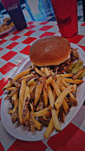 Read moreI have VERY mixed opinions on the place. I love the style, it's very synth and very cool. But, Belle( I think that's the robot's name) is kinda dirty, she needs a scrub or two. We got the fried mushrooms, not the best, they were cold in the middle, apparently they had a new cook so that's why. The person serving us always had a positive attitude, even when I mentioned replacing the mushrooms. The "bancon" (lol) cheese fries were lacking in the cheese department, but the potatoes seem fresh. However, the potatoes were a bit soggy, not crunchy at all. The burgers are perfect, I love them. I got the western burger and my dad got the bacon cheese burger, we both said they were amazing. The onion rings are really good too, they're either bought or double battered, but either way, very good. Okra was good. If you get desert, like one of their milkshakes, get it in a glass of you want the full experience, it looks cool.