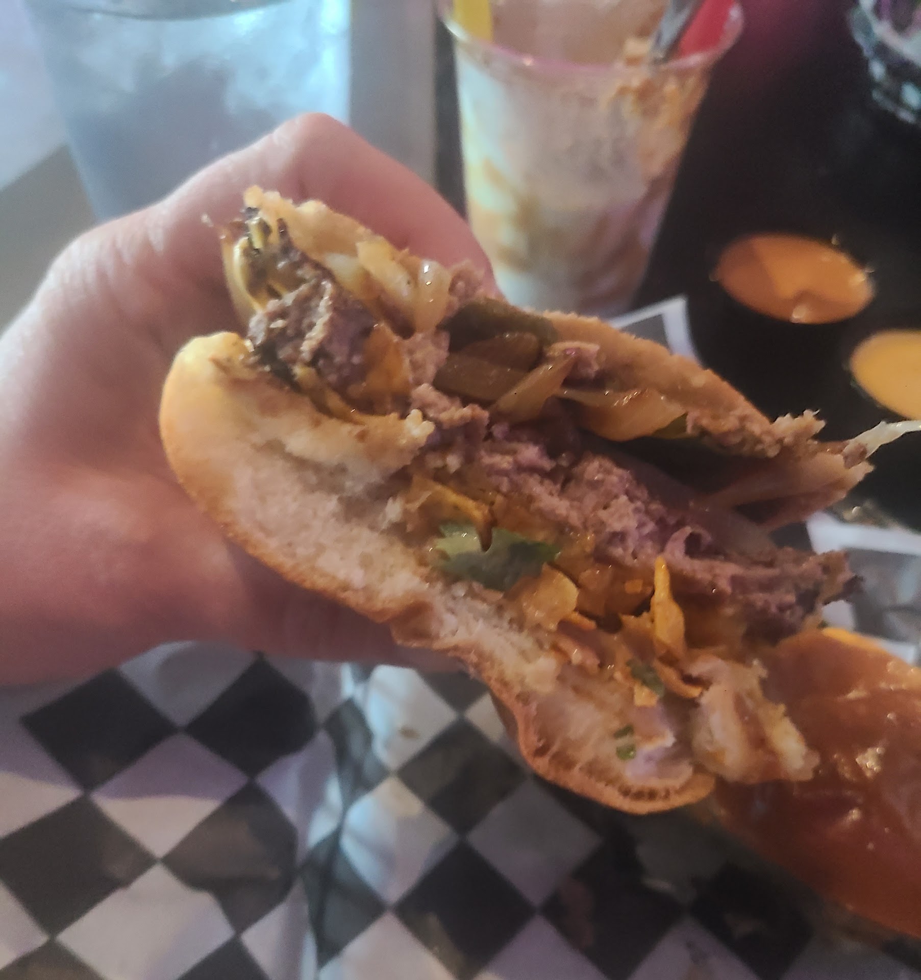 Ā Ā Ā Read moreI just happen to be on my way home from work one night so,I pulled in here, spur the moment idea. The atmosphere is very vibrant and colorful. I found the place to be very clean. I enjoyed the decor. I ordered a hamburger to go. The bartender girl was nice but, when I told her I had never been here before, she just pointed to the menu and that was it. I kind of would have hoped, since I was a new customer, She would have gone out of her way to help explain the menu to me. Instead of just pointing to it and saying there it is or we have a QR code.So, I ordered a BYOB-hamburger. When I got home I was like wow! The hamburger was really good! It was a very generous portion, the flavor was delicious,It was very juicy and I was very pleased with it. I will definitely give this place another try and I hope that maybe when I return ,I will be given a little bit more attention to any specials or highlights about the menu.But, she was polite. And I think the manager/ owner brought me my food and she was also polite and thanked me for...