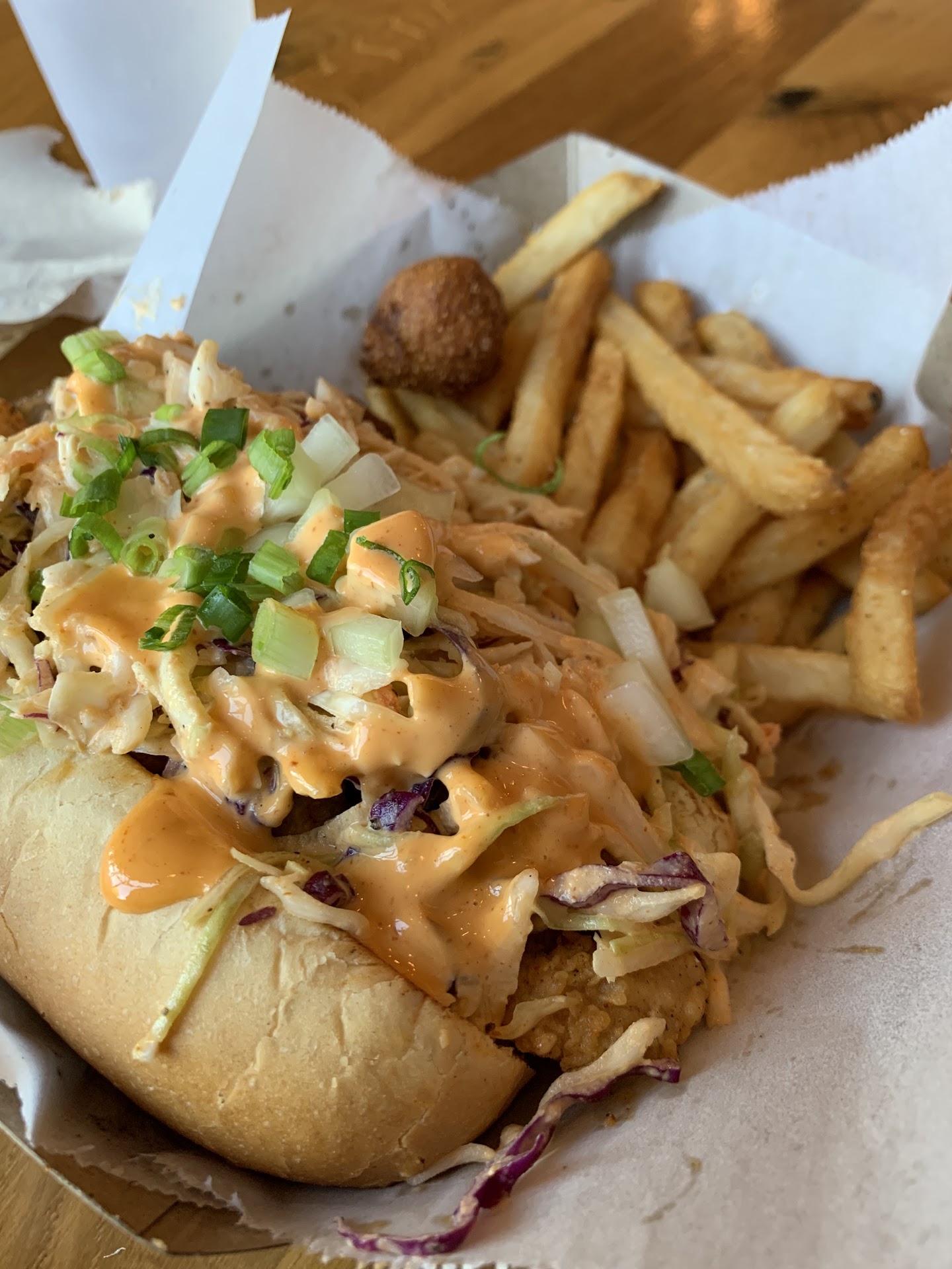 Read moreIâm glad they stopped advertising their swai as âcatfishâ itâs an FDA nono and I donât do swai. Itâs a dirty fish, compared to channel cat even.The shrimp poboys are nice, I like the slaw instead of salad it adds a lot of flavor. The blackened chicken is good and the NOLA style fettuccini is rich and filling. Order a little bread to mop up the sauce. Dining in: itâs hard floors and high ceiling so itâs loud. Community seating so good for groups and great for kids like mine who yell at their food while theyâre eating it. They have battered seasoned fries and chicken strips. What more could a 2yo want? Summary: itâs good. I avoid the slow cooked creole dishes like gumbo and etouffe because frankly mine are hands down better and swimming in 7 different kinds of seafood and legit andouille. But thatâs just personal preference between me, and my dutch oven. Every time I order them just because Iâm craving it; I spend the next day or two just wishing I had made a pot myself. Iâm the same way with crabs with exception of cheap bbq crabs like kings or seafood party. So go check this place out. I endorse a shrimp poboy or the blackened chicken Alfredo. Or both! But if you want good actual catfish from America; bobâs on the east side is old school, no frills, affordable, and good. Go during busy hours for hot fish right out of the fryer. Odd hours...