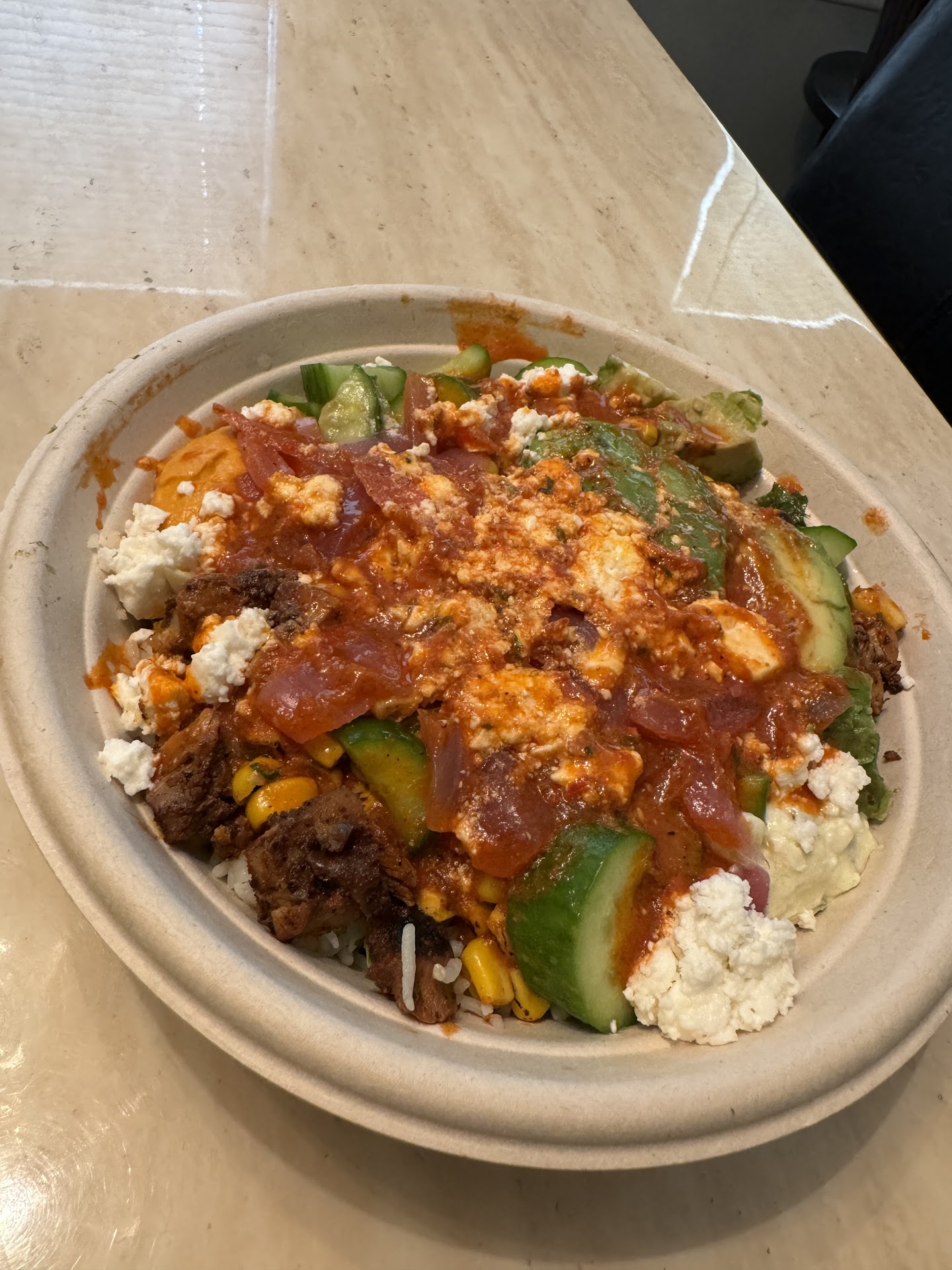 Tonight my daughter and I both ordered bowls. Mine was mixed with salad/ rice, & hers was all grains. She is 12 and has been so excited to try this trendy restaurant. As the employee was making the bowls, I noticed many items were running very low and needed to be replinished- the server was scraping the metal in the bowl several times as if magically more would appear (who wants the bottom of the barrel? Yuck), & the rice seemed to look very dry. The server also charged me extra for grilled chicken because I asked for a little bit more (but he barely gave me any in the first place- not even half of a spoonful). When we got all of the way home and started eating we noticed the rice was rock hard and crunchy to the point of being inedible. It was terrible. Extremely disappointed in this experience. Thankfully, I spoke to Rico the manager and he explained that he'd coach his employees on doing better. He also offered us a replacement meal for the next day- so I can say that I will return based on that customer service piece of Rico trying to make it right. Hopefully they'll do some training...
