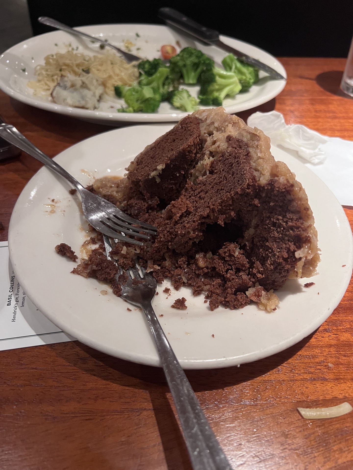 Read morePeople in OKC need to travel a bit and eat some decent food. We are a transplant here and almost always walk away disappointed from restaurants that are highly rated on Google. This place was no different. Ordered a steak (filet), Chicken Picata, and a german chocolate cake with drinks. Ordered medium rare, the server olaced it on the rable and asked me to cut it so he could see if I was fine with the level of cooking. I mean I would expect the kitchen to know what they are doing. Why would a customer need to cut the steak for the staff to confirm if the steak meets medium rare or not. For $38, the Steak was 3 out of five. Portion size was tiny and I understand inflation might have played a role there. Baked potato and cesar salad sides were neither good nor bad. Totally unremarkable. My wife finished the 5 chicken pieces and left the rest of the bland dish (Chicken Picata order). Then enters the star of the show. The german chocolate cake. Just look at the picture. It was the most awful cake we had ever eaten at a relatively high end restaurant (or at least how the pricing and interior looked like). We couldn't find any chocolate and it was full of coconut filling. It looked so much like a carrot cake and tastes like one we asked the waiter to confirm it was chocolate cake. It was cold in the bottom, but warm on top, just what you would expect from a slice left for days without selling and probably reheated before serving. We took a few bites and left it on the table for staff to admire thier creation. You guys can decide for yourself but i wouldnt go here for any...