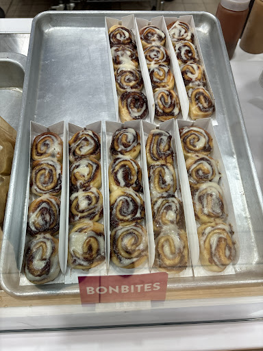 Counter-serve chain serving cinnamon rolls plus other baked goods & specialty frozen beverages.