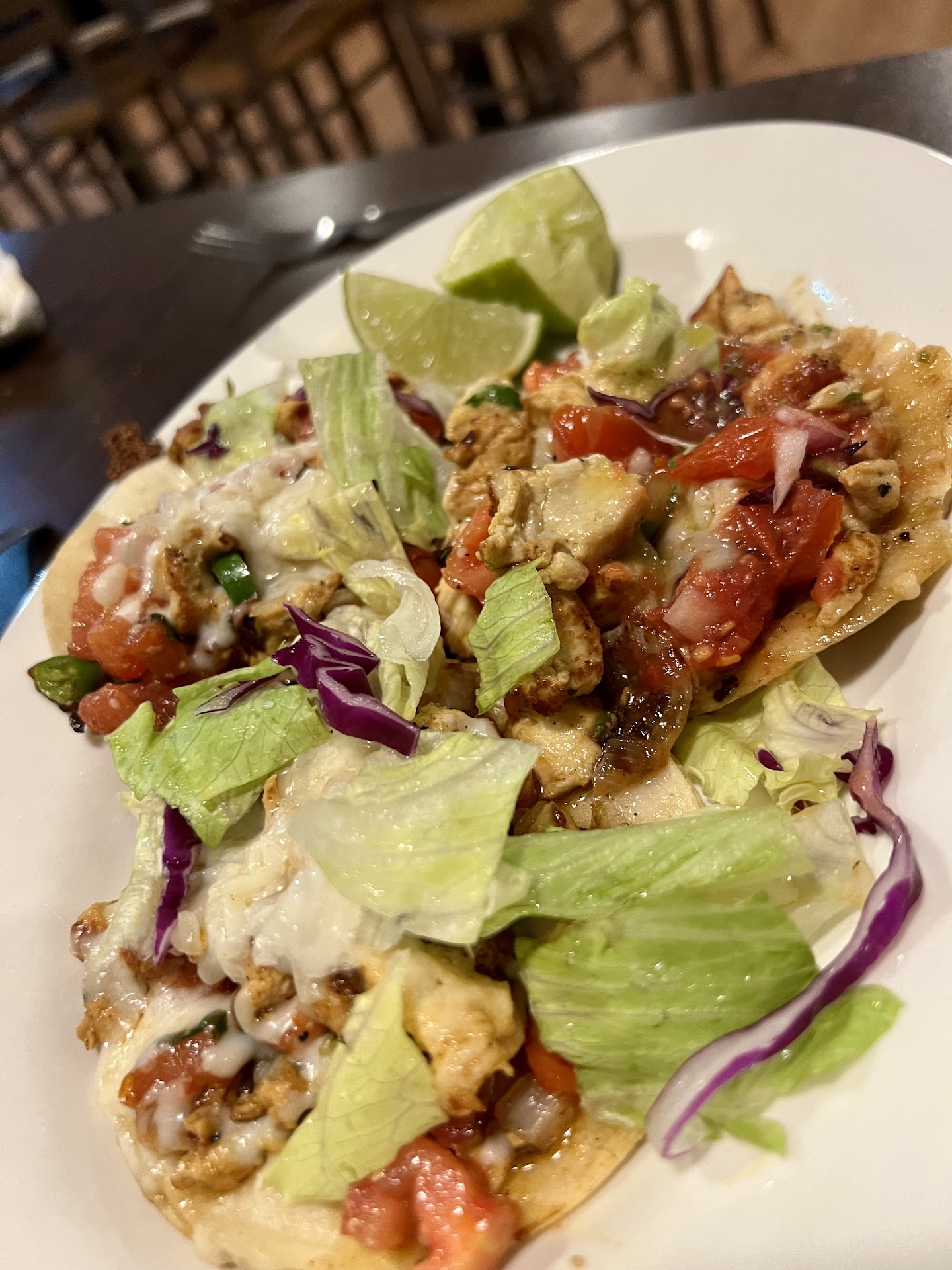 Mid eating- the server asked if we needed anything and I was starting to say a plate for our toddler, but she basically ran away. Then, my husband went to the bar area and asked for a plate. Minutes later we see the server with beers in her had and a plate with lemons and cheese and under it a plate. She dropped the other things off and then brought us the plate that was under the one she just gave to someone. When she sat it down it had cheese stuck on it and what I’m guessing was cilantro. She instantly picked it up and half wiped it with her dirty apron and put it in front of my toddler. That was it for me. The food was bad, the service took forever to get what we needed and then we get it dirty. THEN, we go to pay and for our family of 2 adults and one toddler it was $54 before tip. I wouldn’t have minded the price had it been great service and food. Safe to say we won’t...