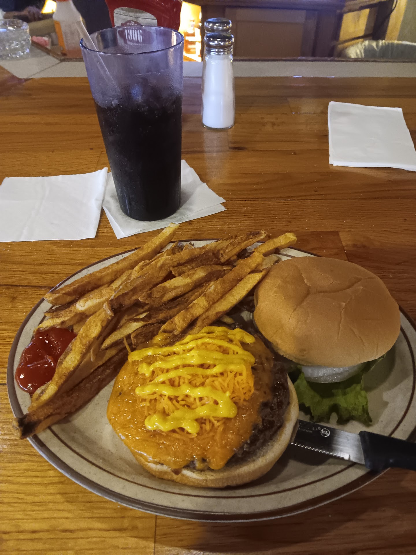 This was my first time at Cousin's Bar and Grill. I had no trouble finding a parking spot near their front door. I sat at the bar where Linda greeted me and asked me what I wanted to drink, I had a diet dr.pepper. She was very friendly and kept my drink full while Iooked over the menu. The mens room was clean and well taken care of. This place has a great laid back atmosphere. There are at least 10 large screen televisions, 3 pool table, the bar has about 15 seats and plenty more tables and chairs. I decided to get their Cousin's Burger with fries, its 1/3 lbs patty with lettuce, tomato, pickles and onion. I added cheese and asked for extra onion. Linda asked me if I wanted mayonnaise or mustard on my burger, I went with mustard. The fries were superb, they appear to be hand cut. The burger was great too, big patty with fresh toppings, delicious burger. I will most definitely will be back, because I want to try the...