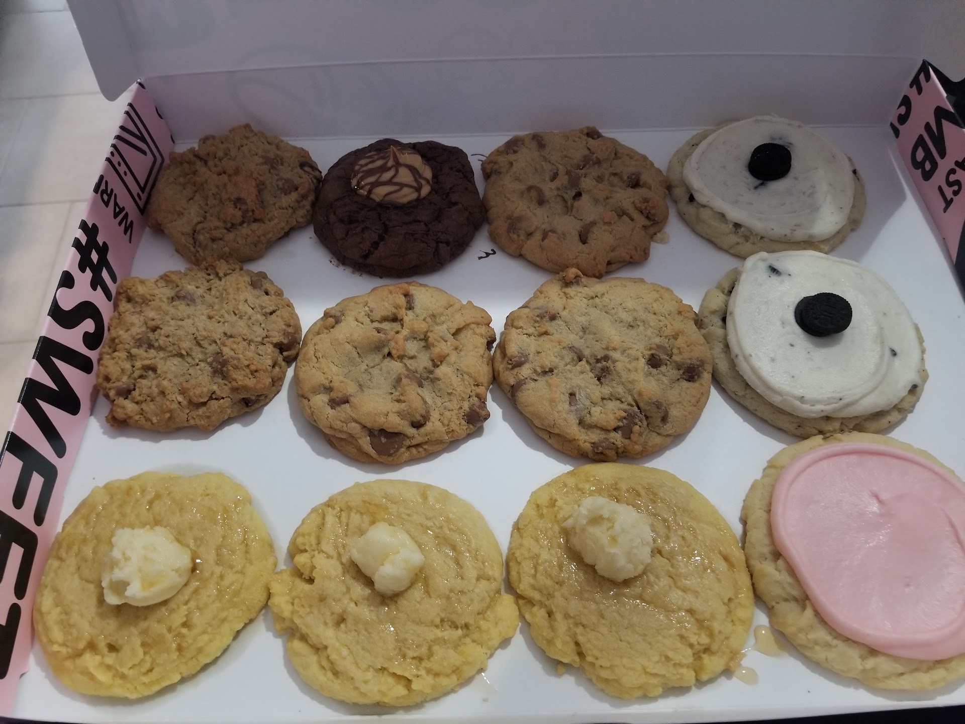 Review: The sugar, snickerdoodle, honeybun, and blueberry or blackberry something cookie, are all to die for. They are a bit pricy but man they are the best cookies I have every experienced. (I am sure the chocolate varieties are really good as well but sadly I don’t like milk/dark chocolate one bit, no matter how perfectly it is made.) would be 5 stars if not for the steep prices but quality/ taste wise 5/5.