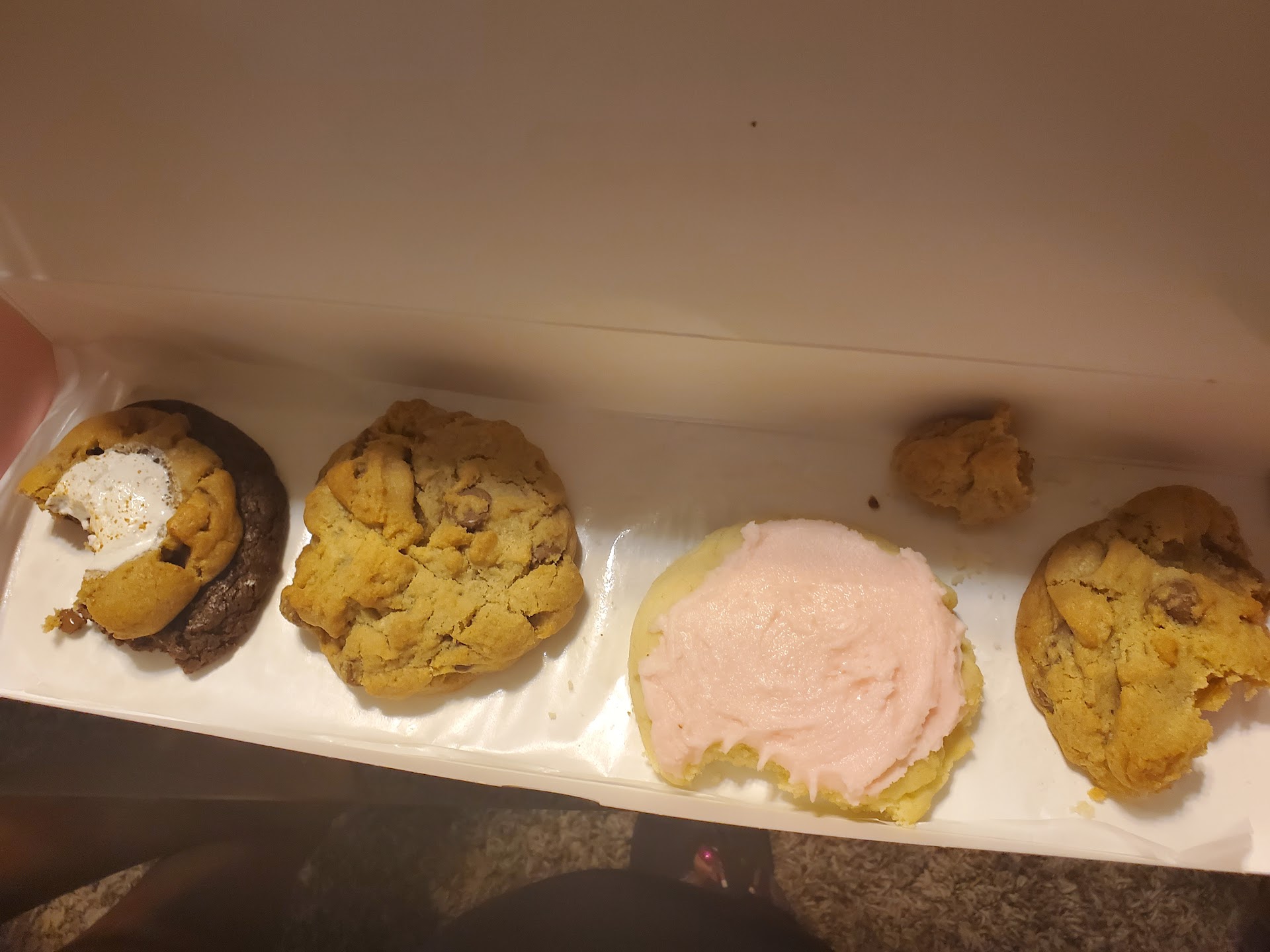 PS: The prices are also a little steep but I understand you have to stay in business somehow. I would buy from you all a-lot more often if they weren’t $4 a cookie; maybe $2 or $3 would be a bit more fair, or even $3.50 for one. $6.50 for 2, 12$ or $11 or $10 for a 4 pack would be more fair, increase quantity of sales, and probably still profitable by a large margin, or at the very least, a better discount when you buy more multiple cookies. That way customers are actually encouraged to buy more to get a better “deal.” Just some suggestions!...