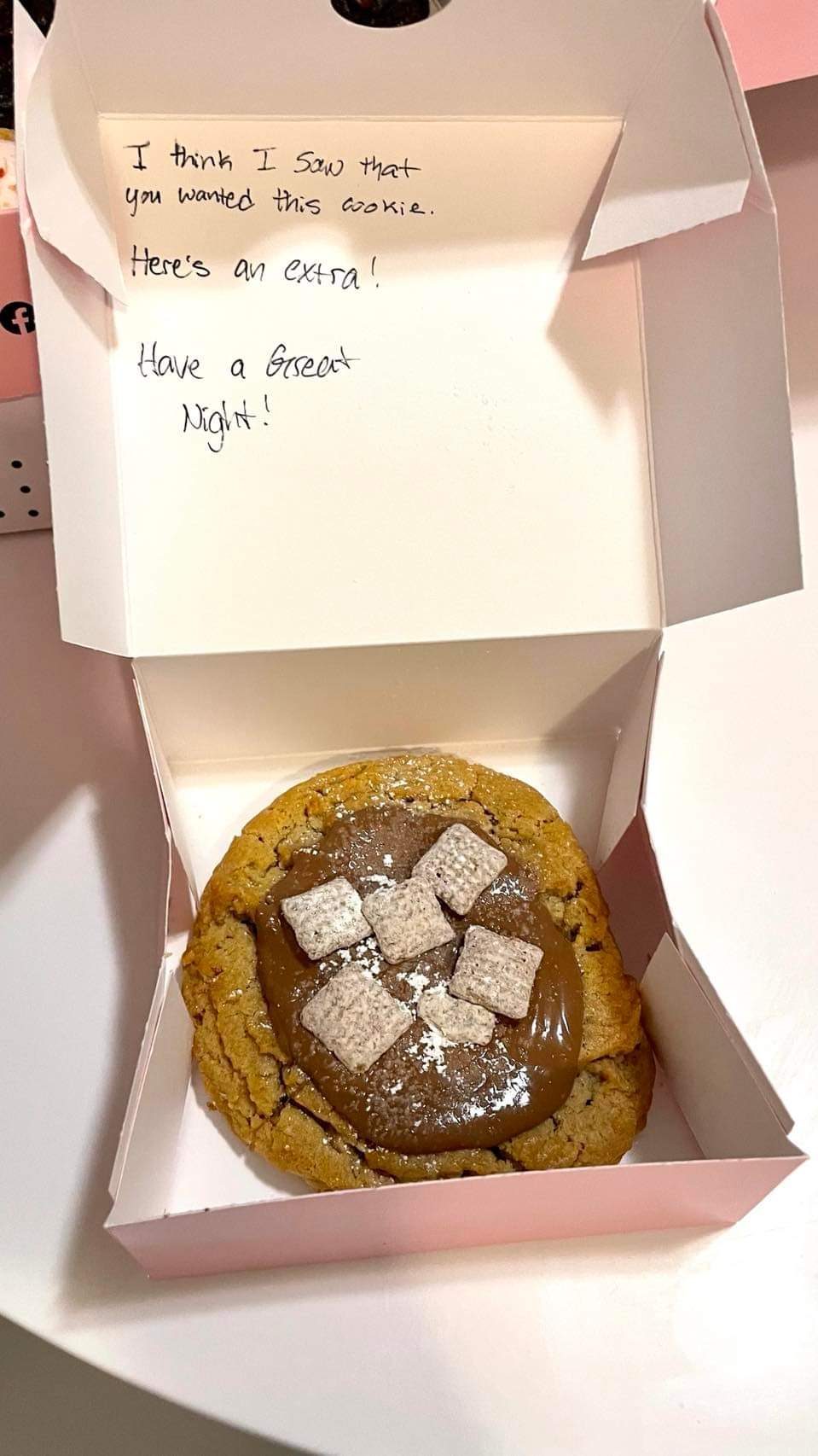 PS: The prices are also a little steep but I understand you have to stay in business somehow. I would buy from you all a-lot more often if they weren’t $4 a cookie; maybe $2 or $3 would be a bit more fair, or even $3.50 for one. $6.50 for 2, 12$ or $11 or $10 for a 4 pack would be more fair, increase quantity of sales, and probably still profitable by a large margin, or at the very least, a better discount when you buy more multiple cookies. That way customers are actually encouraged to buy more to get a better “deal.” Just some suggestions!...