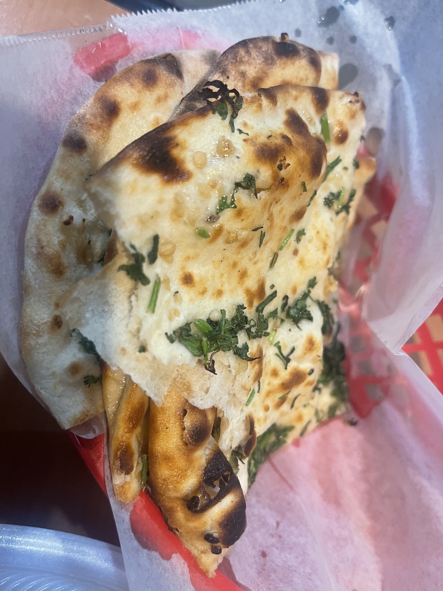 Had the Chicken Tikki Masala (mild) and the Mutton Curry (spicy) along with 2 orders of Naan.Your first thought is "uh.. ok.." then you see the Naan. Made very authentic - cooked in a Tandoor oven, and then slathered with butter. Thin, crisp, and perfectly flavored.