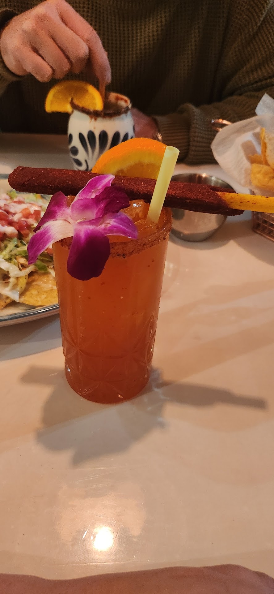 Read moreWhile the cocktails are beautiful, i still left very disappointed after our meal. We had a table of 6 and they sat us at a booth, which was a little claustrophobic especially considering how busy it was. This wouldnt have been a huge deal if the service was better. 3 of us ordered drinks and only 2 came out until we flagged down our server and finally got her attention. I waited about 25 minutes for my drink and the server didnt even acknowledge it or apologize which i thought was crazy. Im a server so i know how busy we can get but our drinks were empty, my food was also forgotten because she didnt write anything down im assuming. she also didnt apologize for the food coming out 15 minutes after the others. The chips and salsa were weird, there were lots of chewy chips and theres no salt or anything at the table, not even napkins? We asked for napkins to 2 different people and it still took 10 minutes for them to bring it over. She kept asking if everyone was okay and you could tell we were a bit annoyed but never sent a manager over or atleast try and make up for it? Overall, We will probably not be back. The service was awful, food was mid, but the drinks were unique and beautiful. The whole place just seems very unorganized and chaotic. The bathroom trashcans were overflowing with trash and the toilet wouldnt fully flush so there was just stacks of toilet paper in the toilet bc it wasnt strong enough to flush all the way. There were so many people waiting by the door and covering the exit but there wasnt any sense of urgency to get us taken care of and get us out of there while we were eating. I understand how busy everyone was but the experience was just.....