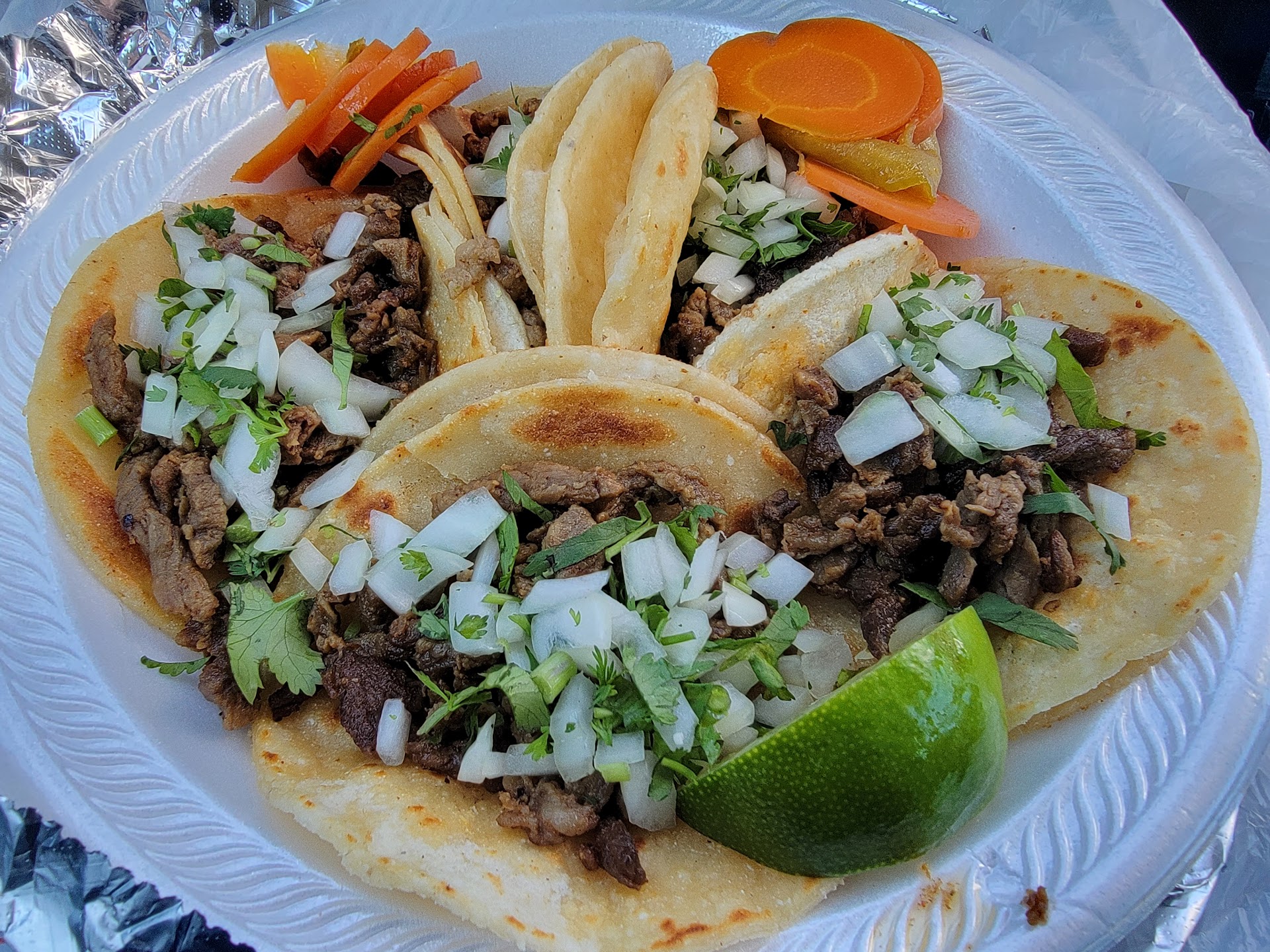 Ā Ā Ā Read moreMake sure to bring cash! There was a cash only sign when I went in the evening. I got the #1 taco plate asada. The tacos were very tasty! Lots of food for the price, and the spicy carrots on the side were so good. Came neatly wrapped in a bag with foil over the plate, salt, green and red salsa, and napkins. Looking forward to coming...
