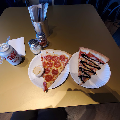 The new location is small but conveniently located. The patio is a friendly little space. The inside doesn't appear to have space for a large crowd. As at all locations, there are daily options by the slice. This always includes at least one vegetarian choice. If you want to design your own flavor pizza, expect to pay a rather high price. However, it will be a rather large pizza. I struggle to fathom paying 25$+ for one pizza. Maybe you're ok with that?... Two slices will run ya about 8$. Drinks come in a can- both soda and beer available. Free water cups and a spot to fill it with ice and chilled water! If you're a sauce dipper, 50¢ a serving. I recommend trying the pink sauce- which is essentially a slightly spicy ranch. Overall, not my favorite pizza. The crust has almost no flavor, can seem a bit too chewy, and flavor choices are often one option if you are not eating animal with your pizza. Im not a big fan of plain cheese pizza on flavorless crust. I will go back again, many times im sure. It is convenient, pretty quick, and doesn't require much thinking. Grab a slice and go if you're hungry and on the fly! Stay and have a slice and maybe a beer on the patio if you're in the mood to hang...