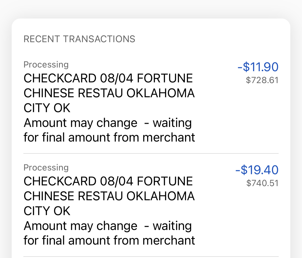 Read moreIf paying by a credit or debit card be sure to check your online banking information ASAP this restaurant will charge you several different transactions. When you call and tell them they say no we only charged you once NOT TRUE!! First time i thought it was a mistake I paid my bill with debit card and gave a $10 cash tip. A few days later I looked at my online banking and it showed the restaurant had given themselves a $30 tip…NOT COOL AT ALL.. the second time I went back which was years later the only reason I went is because my husband wanted something. I happened to pull up my bank statement and once again I was charged for TWO transactions when it should had only been 1 transaction. I tell the owner I will be up there in 5 minutes so she can see my account she tells me NO!!! I’m telling everyone who buys food from Fortune PAY WITH CASH! Please check your Financial Transactions if you are paying with a Card or Check!!!!!!!! This Place will HUSTLE your hard work...
