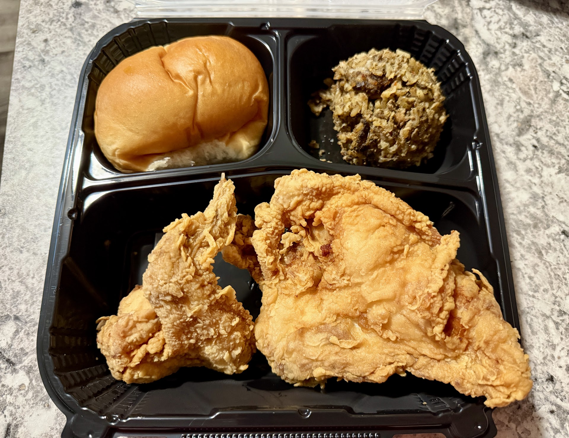 Read moreSomeone said this is the best fried chicken in town , I hope not. I expected more from Oklahoma. I was visiting family that moved here last year and one day for lunch I decided to come and get some takeout. I got the Breast and Wing 2 Piece Dinner to go with Dirty Rice and Roll. The menu is pretty good sized and they also have Rotisserie Chicken , not just fried. Chicken Tenders and Chicken Sandwiches also. They have about 10 different sides to choose from.
